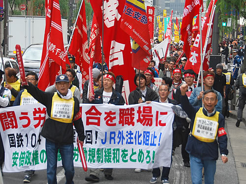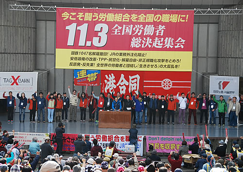 しかも国鉄決戦の前進は、安倍政権の「成長戦略」の要でもある「解雇特区」攻撃などを最初から破綻させています。安倍政権を打倒する最大の力は、国鉄決戦を基軸とした階級的労働運動です。11・3集会の地平から安倍政権打倒へ突き進みましょう。臨時国会の反動諸法案を断固阻止しましょう。