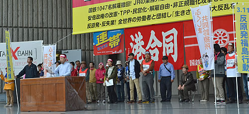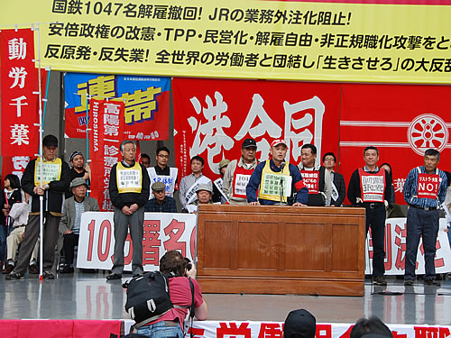 すでに11・3労働者集会に向かう過程で、解雇撤回・JR復帰を求める10万筆署名運動が国鉄、自治体、郵政、教育の4大産別を先頭にして全産別で闘われてきました。
