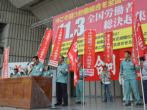 11・3労働者集会は第五に、闘う労働組合を全国で自分の職場につくるこの間の闘いの前進と一体のものとして、またその集約としてかちとられました。11・3大結集への過程では、闘う労働組合の再生のための不屈の挑戦が全国の職場で開始されました。資本や体制内労働運動指導部と激突しながら職場全体を組織する闘いが本格的に始まったのです。