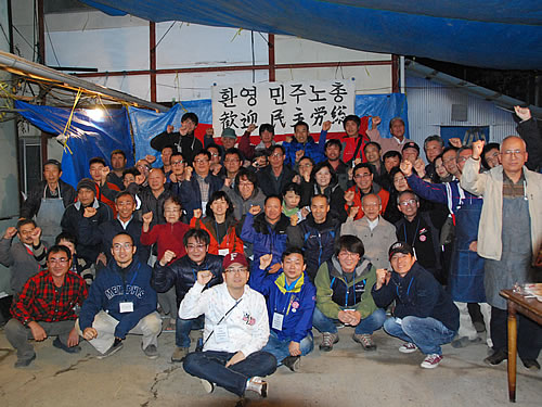 自身も解雇者である公務員労組のキムジョンスさんは「公務員労組は組合員10万人。現在、@解雇者の原職復職、A労組認定を要求し、全教組とともに対政府闘争を全面展開している。99年年金闘争を契機に闘う労働運動をつくろうと立ち上がり、2000年には公務員労働者の労働基本権を獲得するために大闘争を繰り広げた。しかし政府は公務員労組を認めようとしなかったため、02年に自主的に労組を設立した」と振り返った。以来、ノムヒョン政権による団体行動権なき公務員労組特別法を拒否し、法外団体として闘い続けているのだ。