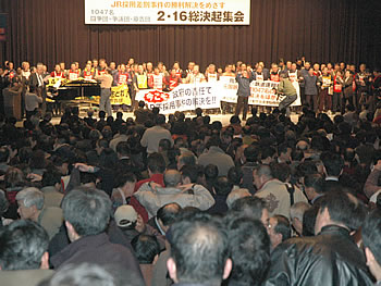 2月16日の「JR採用差別事件の勝利解決をめざす! 1047名闘争団、争議団、原告団2・16総決起集会」の大成功(記事前号)は、国鉄闘争と日本労働運動に巨大な衝撃を与えている。国鉄分割・民営化から19年目にして成った被解雇者1047名の大同団結は、解雇撤回・JR復帰に向けての大きな突破口をこじ開けた。国鉄闘争に自らの命運を重ね、国鉄闘争を支えてきた多くの労働者がここに勝利の展望を見いだしている。