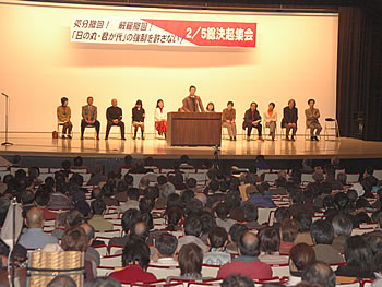 昨年の不起立で停職処分を受けた教育労働者は、2・5集会で「戦争協力拒否は私たちの義務だ。どんな処分を受けても生徒に自分の生き方を伝える」と語り、闘うことで逆に「自分が獲得するものはたくさんある」「一緒に不起立をしましょう」と、不動の確信をもって呼びかけた。この訴えは今や教育労働者のみならず、すべての闘う労働者の魂を打つものとなって全国に波及している。都教委による停職・免職処分を絶対に許さないための署名運動も始まった。