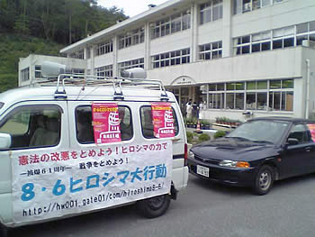 私は、「61年前の8月6日から広島で起こったことが、今、イラクでくり返されている。『2度と戦争はしない』という憲法9条が変えられ北朝鮮で劣化ウラン弾や核兵器さえ使われようとしている。絶対とめなければならない」と決意を新たにしました。