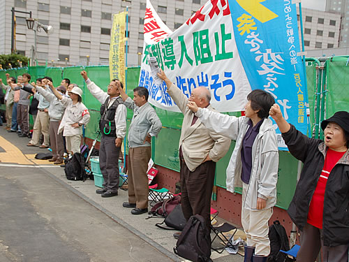 さらに「日の丸・君が代」被解雇者の会、多摩教組、世田谷教組など、力のこもった発言が続いた。5月27日に京都で開かれた「改悪教育基本法の具体化を許さない全国集会」に750人が集まり、伊吹文科相の事務所に抗議をたたきつけたことも報告された。