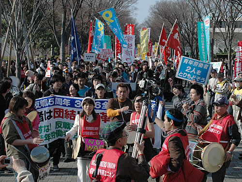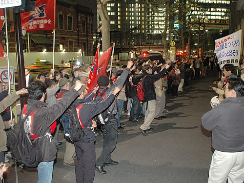 5・15沖縄闘争(5・18県民大会)に全国から結集し、ILWUの米西海岸全港湾封鎖行動に続こう。職場闘争を闘い、アメリカ―本土―沖縄労働者の国境を越えた団結をつくろう。その力で、6〜7月洞爺湖サミット粉砕闘争、11月全国労働者集会の1万人結集へ突き進もう。