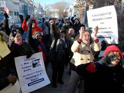 アメリカでは、住宅からたたき出された労働者が、立ち退き拒否の実力闘争に立った。自動車部品工場の労働者は「経営破綻のツケを労働者に押しつけるな」とストライキに突入した。日本の私たちも米軍基地で、学校で、鉄道で、ストライキを闘った!