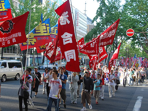 8月30日、函館で行われた自治労第84回定期全国大会で、労働者の首を切る公務員制度改革など新自由主義政策を進める自治労本部を倒し、闘う労働組合を再生し、階級決戦にともに総決起することを訴える情宣活動に参加しました。