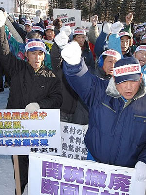(写真 日豪FTAの締結に反対してデモする北海道の農民【06年12月12日】)