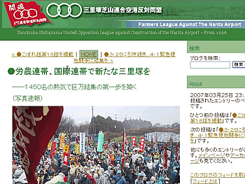 昨年の9月8日、反対同盟のブログ (http://www.sanrizuka-doumei.jp/) (写真)が開設されて以降、多数の人びとが閲覧してくれた。担当者はいっそうのアクセスを呼びかけている。