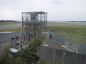 写真Aは横堀団結小屋だ。横風滑走路を敢然と阻止し、空港のど真ん中にそびえている。最近NAAは写真にあるように、高さ20bにもなる、沖縄の象のオリのような鉄柱と金網で囲い込んだ。いかに恐れているかが分かる。ここも三里塚43年の闘いの勝利性を一目で実感させてくれる拠点だ。