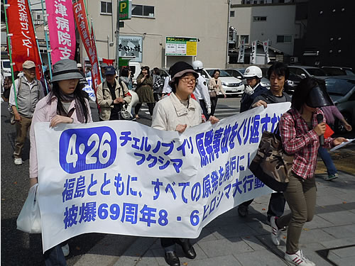 広島 チェルノブイリ事故28年 中電前で座り込み
