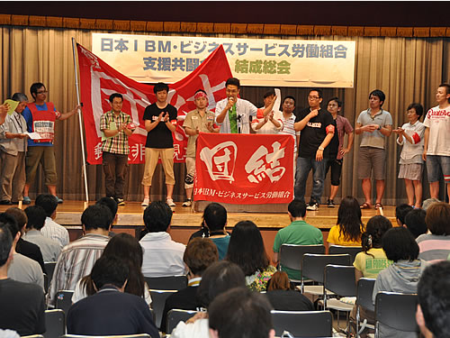 「仲宗根くんの解雇撤回まで徹底的に闘います。本日、私たちはここに『日本IBM・ビジネスサービス(IJBS)労働組合支援共闘会議』の結成を宣言いたします。沖縄の労働運動を解雇撤回闘争で塗り替え、すべての労働者の闘いに勝利する決意です」