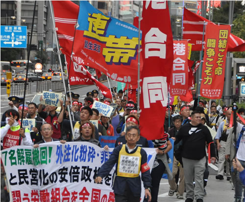 新自由主義と全面対決 闘う労組が国境を越え団結 11・2全国労働者集会 戦争と民営化の安倍を倒せ
