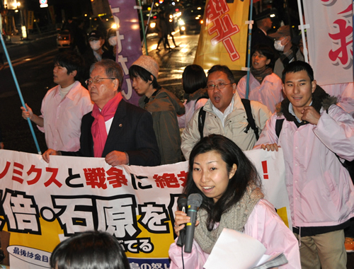 民主党は全然ダメだった。東京8区から出た円より子は「以前の自民党は良かったけど安倍政権になってからはダメだ」なんて演説していて、民主党のマニフェストも「分厚い中間層をよみがえらせる」などと言っていた。共産党もそうだけど、「もう一度戦後体制に戻ろう」という主張は全然受けなかった。今の時代、本当に求められているのは、根本的にこんな社会はぶち壊さなきゃいけない、変えなきゃいけないという鮮明な主張です。