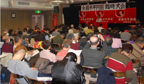 1月25日、大阪市・弁天町生涯学習センターで全国水平同盟臨時大会(第3回大会)が、全国から150人の結集でかちとられました。