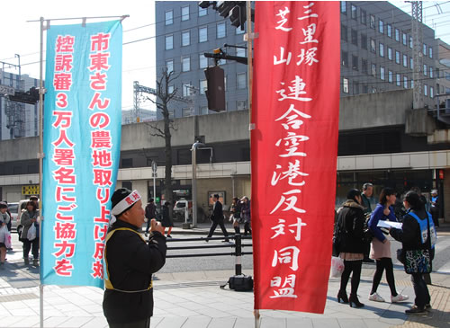 反対同盟と支援連は午後に千葉市繁華街での3万人署名情宣に立ち、農地強奪阻止と安倍政権打倒を熱く呼びかけた。