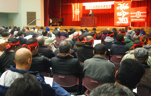 (写真 動労西日本の中西副委員長を始め国鉄労働者が闘いの最先頭に立つ決意を固めた【2月16日 大阪市】)