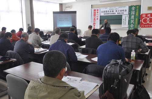 1月31日~2月1日、福島県二本松市で全国農民会議第3回総会と全国農民交流会が60人の参加で開催されました。3・11から4年を迎える福島と、三里塚、沖縄、そして全国の農民の団結をうち固めました。