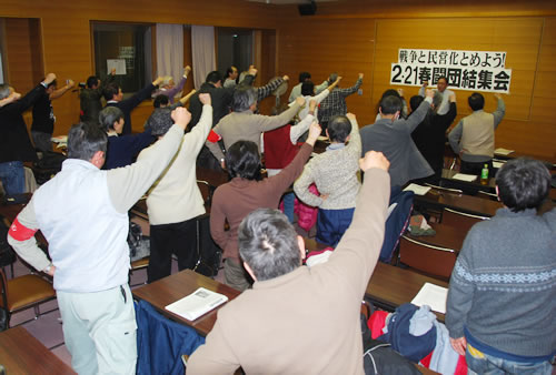 そして「参戦への回答は帝国主義を階級的団結で打倒すること。スターリン主義や『何もしない』で屈服する旧協会系などをのりこえて、現場の労働者一人ひとりを絶対に信頼し、その階級性に依拠して闘おう」と語り、JRダイ改阻止、国鉄・反原発・杉並区議選必勝を闘う春闘への決起を訴えた。