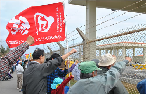 この間の米軍による暴言への怒りも加わり、沖縄労働者階級の「基地全面撤去」の闘いが「オール沖縄」をのりこえて新たな段階へと進み始めた。その闘いの軸に沖縄の労働組合が登場し始めている。昨年8月と9月の辺野古現地集会に比べても圧倒的に労組の旗が目立っている。集会実行委員会がチャーターバスを手配しない中、労組が大型バスを仕立てて辺野古現地に駆けつけた。