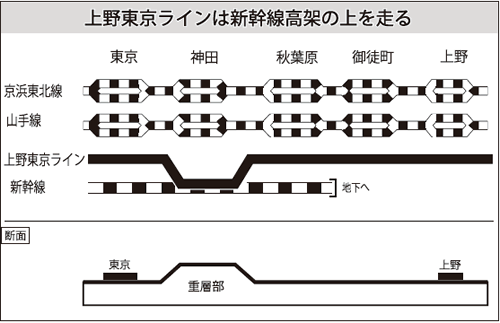 上野東京ラインは上野―東京駅間に京浜東北線、山手線に加えてもう1本の在来線を敷設し、上野駅どまりだった宇都宮線、高崎線、常磐線と、東京駅どまりだった東海道線を直通させるというものだ。JRはこれで乗客の利便が向上し、京浜東北線や山手線の混雑も緩和されると宣伝している。だが、上野東京ラインは安全上、根本的な問題を抱えている。