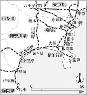 JR貨物は新鶴見機関区(新川崎)、川崎貨物車両所(塩浜)から臨海鉄道に直結している。根岸駅にある国内最大の日石製油所のタンク車両は郡山に直結している。神奈川にはまた、新潟・新津車両製作所とペアの総合車両製作所(J―TREC=ジェイトレック)や川崎火力発電所(JR東日本が使用する電力の4割を発電)が存在する。さらにJR東海は橋本にリニア新幹線の駅と車両基地を設置することをたくらんでいる。小田原・橋本・川崎はかつての国鉄の街だ。