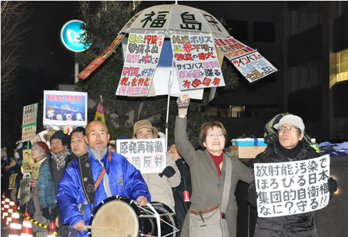 3月6日夜、第139回目の反原発金曜行動が首相官邸前で闘われ、川内原発・高浜原発再稼働反対の怒りの声がうずまいた。(写真)