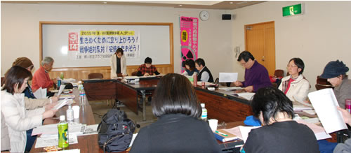 冒頭、各地の3・8行動と3・11福島行動をまとめたDVDビデオを上映。数々のメッセージが紹介され、NAZENナガサキの城臺美彌子さんは支部結成を祝い、行動力に敬意を表す熱い思いを届けてくれました。