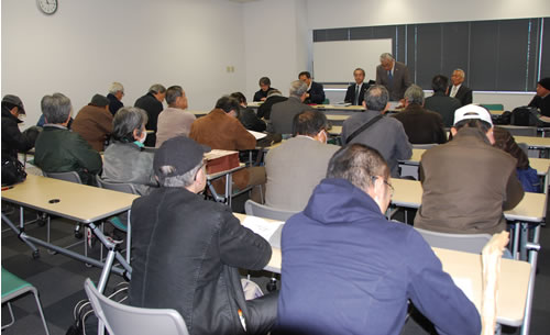 近くの会場で、伊藤信晴さんの司会で裁判報告会が開かれた(写真)。弁護団は判決文を受け取って、少し遅れて到着。