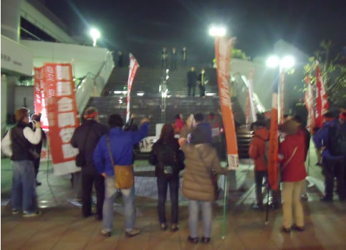 関西合同労組・新大阪郵便局分会は3月30日、組合員への3月末雇い止め絶対反対を掲げて、第3波ストライキに決起した。関西各地から60人を超える労働者が結集し、午後9時から新大阪局の門前でスト突入集会がかちとられた。