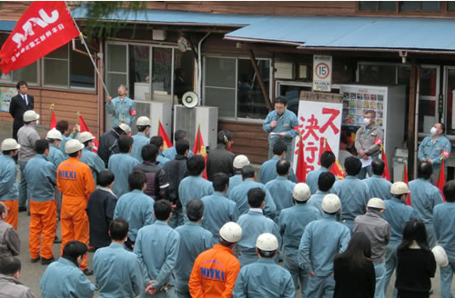ストで「官製春闘」打破 日機労組 動労総連合と連帯し勝利