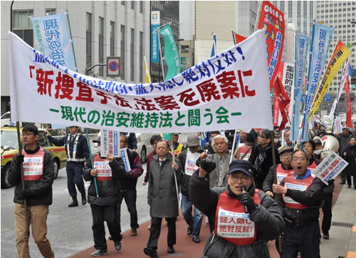 4・10霞が関 「新捜査手法」阻止へデモ 司法改革推進の日弁連許さず