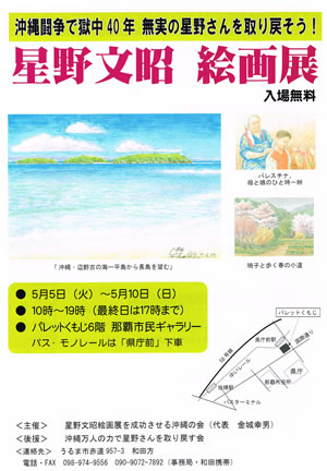 5月5日から10日まで那覇市民ギャラリーで星野絵画展が開催される。これは、沖縄ゼネスト情勢と星野闘争が一つになる歴史的な闘いだ。