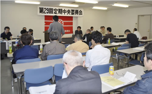 田中康宏委員長のあいさつ、石井真一副委員長の経過報告、川崎昌浩書記長の情勢と当面する方針の提起が行われた。田中委員長はあいさつで、今定期中央委員会がかちとるべき課題を4点にわたり提起した。