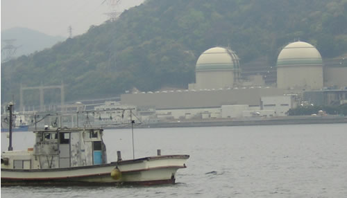 われわれは、船で近くまで行き、森と山の塀で隠された大飯原発と対峙した。船が岬をぐるっと回り込むと原発がグロテスクな姿を現した。この船は原発の宣伝活動のために運営されているのだが、実際は原発反対の人ばかりが利用し見学しているとのことだ。