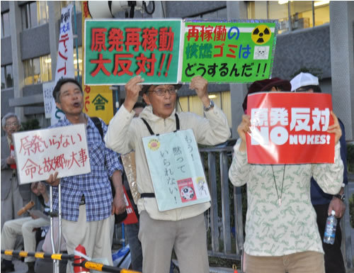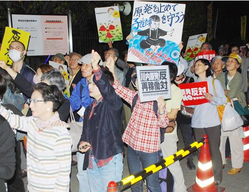 官邸前では、箱根の火山活動の活発化を受け、火山列島の日本で原発を設置する危険性を指摘する声が上がった。さらに「安倍首相、あなたは品性もない。総理大臣、議員を辞めなさい。私たちは原発ゼロまで声を上げ続けます。皆さん、ここの行動は多くの人たちを励ましています」という訴えがあった。