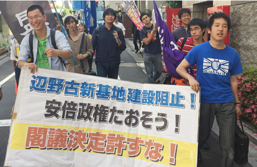 〈上〉5月14日午前8時、戦争法案閣議決定阻止へ法大文化連盟と全学連が労働者人民とともに官邸前に駆けつけた
