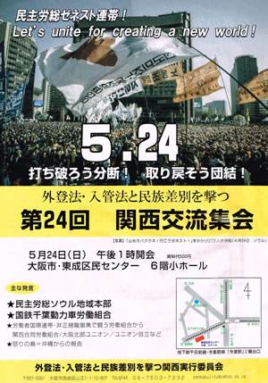民主労総ゼネスト連帯!打ち破ろう分断!取り戻そう団結! 5・24外登法・入管法と民族差別を撃つ関西交流集会