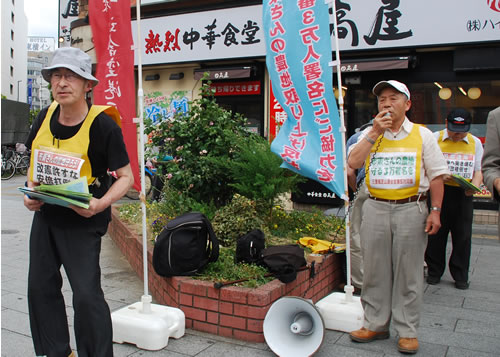報告集会終了後、反対同盟と支援連は、千葉市繁華街で市東さんの農地取り上げ反対3万人署名の街頭宣伝に立ち上がった(写真)。