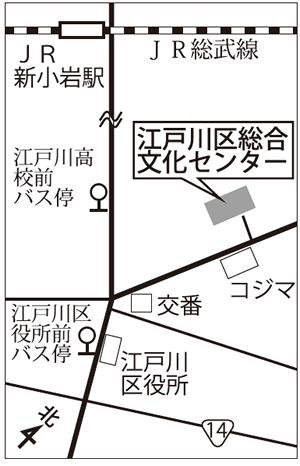 ◆アクセス/JR総武線「新小岩」駅南口より徒歩約20分、または「葛西」「西葛西」行き都営バスで「江戸川高校前」または「江戸川区役所前」下車徒歩5〜10分、千葉街道沿い
