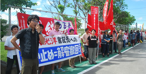 「『貧困の島』=『非正規職の島』=『基地の島』という沖縄の現状を打破するには、沖縄の労働者、とりわけ基地労働者と全国の労働者が団結し、この現状を根底から覆す以外にない」
