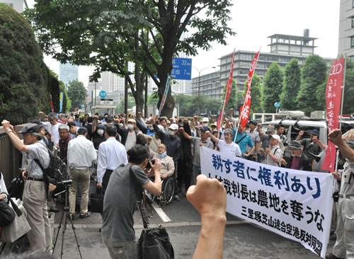 6月12日、東京高裁第19民事部(小林昭彦裁判長)は、三里塚芝山連合空港反対同盟・市東孝雄さんの農地法裁判控訴審で市東さん側の控訴を棄却する反動判決を出した。成田空港会社(NAA)の違法・脱法の数々を一切不問に付して、市東さんに農地の明け渡しを求める極悪の判決だ。三里塚反対同盟と顧問弁護団、支援の労農学は、霞が関デモを闘ってこの反動判決を迎え撃ち、激しい怒りをたたきつけた。(詳報次号)