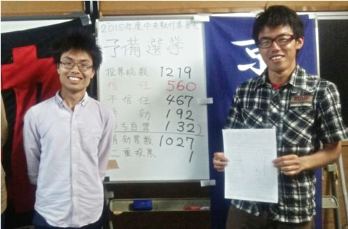 選挙は4月30日に公示され、6月5日の開票の結果、候補者団は投票総数1219票、有効投票1027票のうち560票の信任を得ました。この1カ月、世界情勢はますます戦争か革命かをめぐって非和解的に推移しました。安倍政権が安保関連法案を閣議決定する一方、沖縄県民大会に辺野古基地建設に怒る3万5千人が結集し、沖縄大学自治会選挙も昨年を倍する信任票で成功しました。韓国ではパククネ政権打倒のゼネストへ民主労総が前進しています。