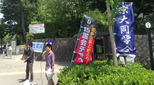 一方、当局と結託して既得権益を私物化してきた旧同学会役員は完全に鳴りを潜めました。大学当局は選挙を非公認とする「公示第4号」を出しましたが、逆に旧同学会役員との癒着関係を追及され大義のなさをあらわにしています。「私達は既に民主的手続きを終わらせています。大学当局に対して、私達は実力行動、つまりストライキで対峙します」(候補者団ビラより)。学生は6・15国会包囲行動へ!