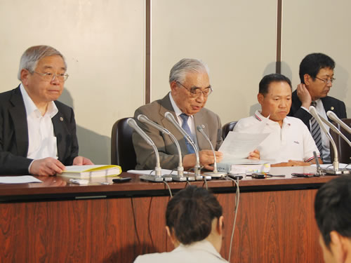 弁護団一人ひとりが次々と発言に立ち、判決全文の内容を批判した。一審判決をなぞり、そのずさんな箇所を補強し、NAAの違法性・不当性を不問に付し、市東さん側の主張をまじめに検討したあとがまったくない代物であることが浮き彫りになった。