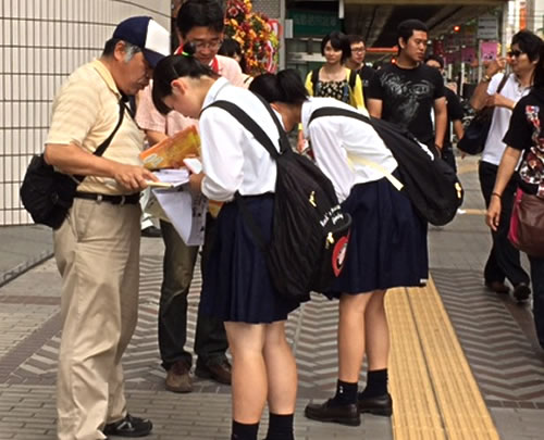 アピールにしばらく耳を傾け、署名する人がたくさんいました。青年・学生が自分たちの問題として反対の意思を示していたのが印象的でした。1時間半で署名95筆、カンパ数千円が集まりました。「韓国の労働者がゼネストに立ち上がっています。日韓連帯で闘いましょう」と声をかけながら『前進』速報版を配布すると、受け取りが良くなりました。