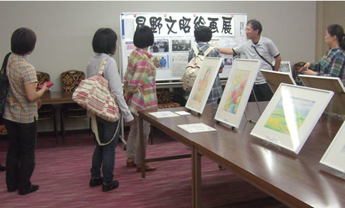 絵画展への参加は全部で205人。それぞれの会場での反応は感動的でしたが、とりわけ高槻医療福祉労働組合の事務所での展示と21人の参加は決戦の中での勝利であり、新たな突破口を切り開くものになりました。また植木団地労働組合の事務所でも展示し、5・15〜17沖縄闘争への決起に続いて、闘いの熱気をさらに高めました。「絵に正義が見えます」と感動的な感想も寄せられました。富寿栄住宅全戸へのビラ入れも決定的で、次につながる大きなものを獲得しました。