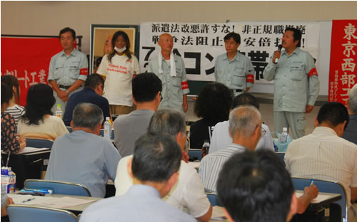 (写真 3年間の闘いで解雇撤回・職場復帰かちとり8カ月。鈴コン分会が全員発言【7月20日 板橋区】)