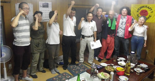 参加者のうち4人が農家か野菜作り関係の人で、野菜の話で盛り上がった。市東さんが「この長雨でトマトに被害が出た」と語ると、「天気や雑草と365日闘う三里塚だから国とも闘えるんですよ」と、農家の三男ならではの木村書記長のリアクションに一同納得。最後に市東さんが「こういう企画は本当にありがたい。闘いが正念場に来ています。さらなる支援をお願いします」と訴えた。