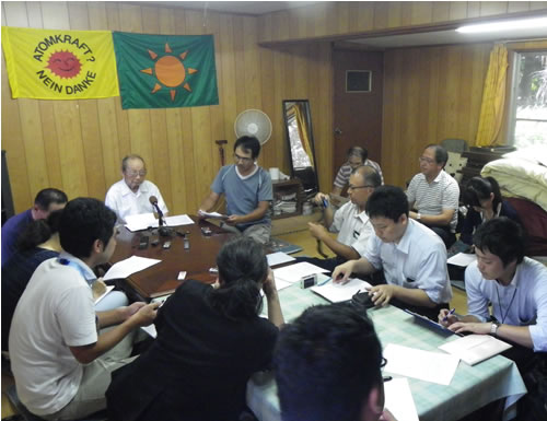 記者会見にはテレビ局2社を始めマスコミ9社が参加した。反対同盟事務局の萩原さんが「最高裁・緊急5万人署名」の開始、耕作権裁判への取り組み、10・11全国集会の内容などを説明した。